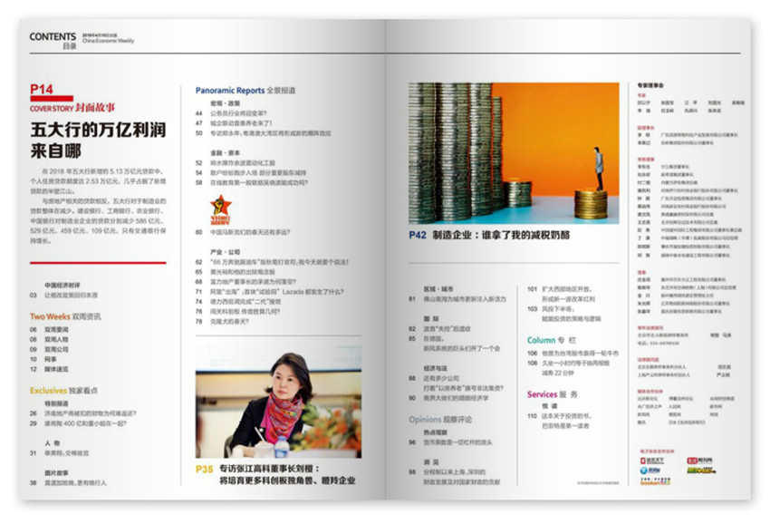 《中國經濟周刊》主要欄目:中國經濟時評、封面文章、特別報道、中國經濟論壇、洞見、區(qū)域、產業(yè)、金臺銀街。