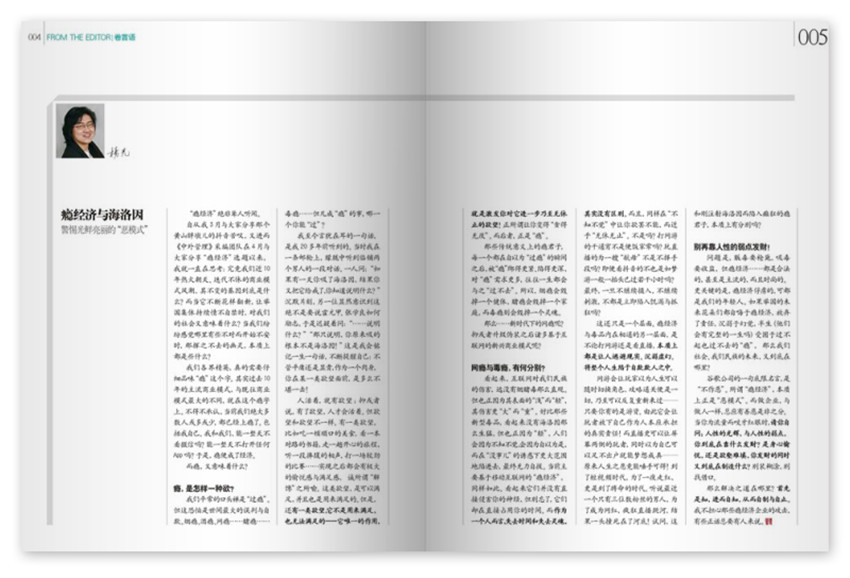 雜志的閱讀人群面多而廣,鮮明的辦刊宗旨和長(zhǎng)期穩(wěn)定的高質(zhì)量文章,具有深度影響力的財(cái)經(jīng)雜志,雜志的獨(dú)特風(fēng)格贏得了廣大讀者喜愛(ài),觀念前衛(wèi)脫俗,文風(fēng)生動(dòng)洗煉。獨(dú)特的敘述風(fēng)格,文字力求生動(dòng)簡(jiǎn)潔而饒有興趣,強(qiáng)調(diào)與讀者的交流,具有濃厚的文人氣息和知識(shí)分子情調(diào)。
