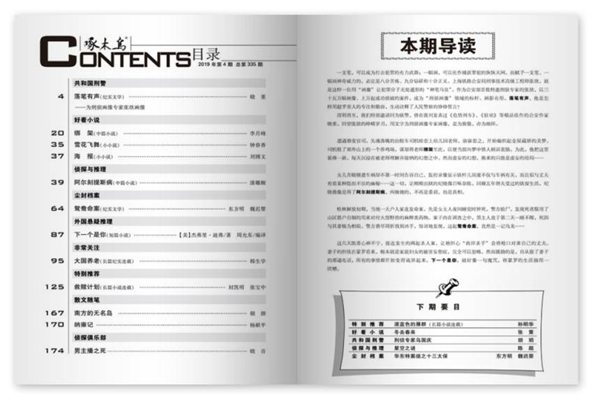 《啄木鳥》創(chuàng)辦于1980年,月刊,單期152頁,《啄木鳥》雜志是中國公安系統(tǒng)大型公安法制文學(xué)期刊,以其獨(dú)特的眼光、膽識和理念發(fā)表了一系列膾炙人口、震撼人心的優(yōu)秀作品。