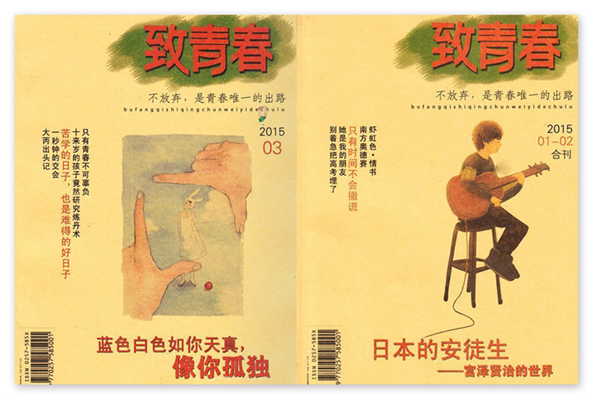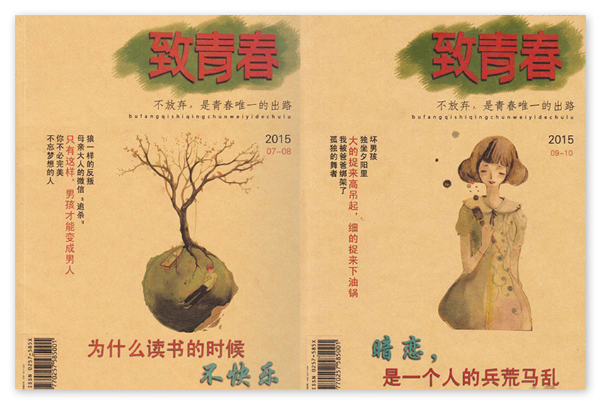 《致青春》是與《讀者》、《格言》、《意林》一起,專門針對(duì)正在人生成長(zhǎng)關(guān)鍵期的中學(xué)生制作了一本精品雜志,中學(xué)生成長(zhǎng)過程中面臨的學(xué)習(xí)的困惑,日常生活的趣味,考試作文的疑難,面臨親情的矛盾,朦朧愛情的憧憬和淺嘗。